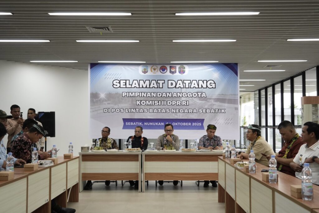 NUNUKAN – Pj. Sekretaris Daerah Provinsi (Sekprov) Kalimantan Utara (Kaltara), Dr. Bustan, S.E., M.Si bersama Wakil Menteri Dalam Negeri (Wamendagri) Dr. Bima Arya Sugiarto dan Anggota Komisi II Dewan Perwakilan Rakyat (DPR) Republik Indonesia (RI) meninjau Pos Lintas Batas Negara (PLBN) Sebatik, Nunukan, Sabtu (4/10).