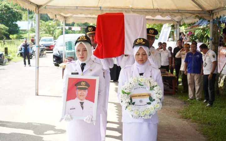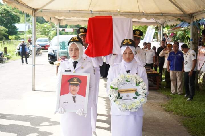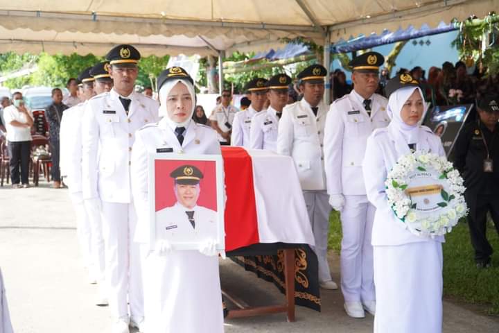 NUNUKAN – Bupati Nunukan Hj. Asmin Laura Hafid bersama Wakil Bupati Nunukan H. Hanafiah hadir pada apel pelepasan jenazah secara kedinasan Alm. Leonardus Mario Iskandar di rumah duka Jalan Pongtiku RT 16, Jumat (29/09).