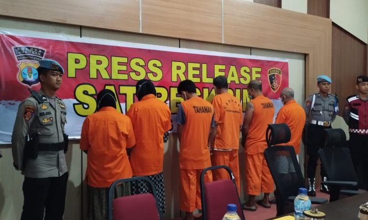 Sebanyak 6 pelaku berhasil diamankan diantaranya 4 orang laki-laki yakni AM (58), SM (34), SF (56), MB (42) dan 2 perempuan NM (39), NF (49) serta 1 orang daftar pencarian orang (DPO) yaitu LK (58).