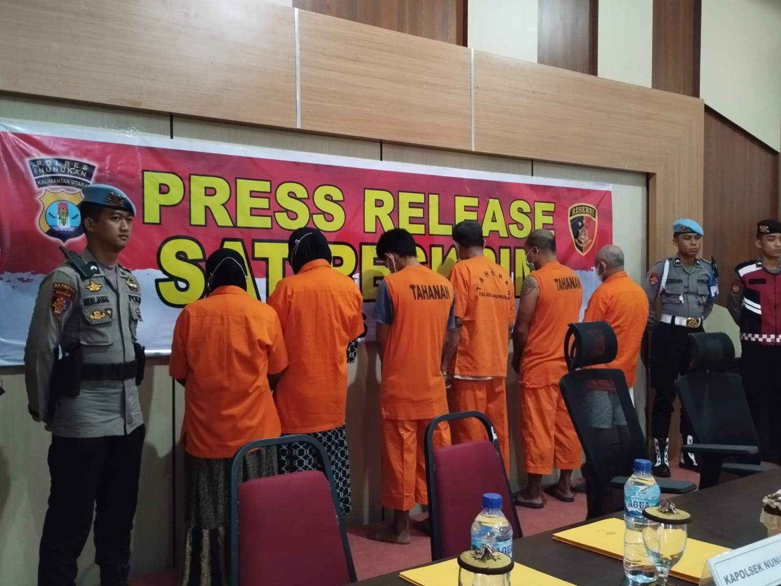 Sebanyak 6 pelaku berhasil diamankan diantaranya 4 orang laki-laki yakni AM (58), SM (34), SF (56), MB (42) dan 2 perempuan NM (39), NF (49) serta 1 orang daftar pencarian orang (DPO) yaitu LK (58).