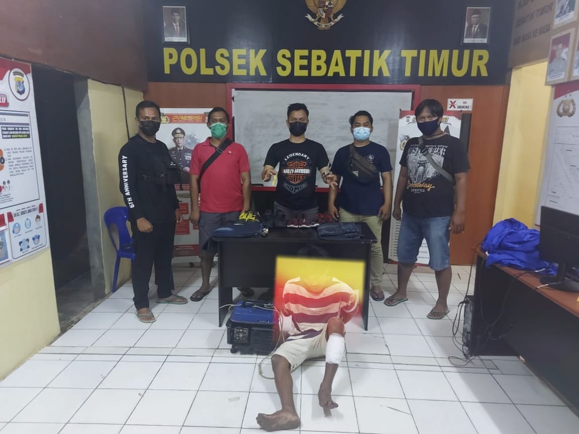pada hari Jumat tgl 09 april 2021 sekira pukul 20.00 wita pelaku beserta barang bukti berhasil diamankan oleh Unit Reskrim Polsek Sebatik Timur, pelaku yang kemudian di ketahui bernama S Als A ,Ttl, Rappang ,Umur 29 ,Thn, Agama Islam,Suku Bugis ,Pekerjaan, Nelayan, yang beralamat di Jalan Jembatan Pasar Rt.03 Desa Sungai Pancang Kec.Sebatik Kab.Nunukan Prov.Kaltara, di amankan Unit Reskrim Polsek Sebatik Timur beserta barang bukti 1 (Satu) Unit Mesin Genset Merk Tiger Berwarna Biru,1 (Satu) buah gunting ,1 (satu) buah Celana Jeans Panjang Merk Levis,1 (satu) buah Celana Jeans Pendek , 4 (empat) pasang Sepatu berbagai merk 1 (satu) buah pisau Lipat,
