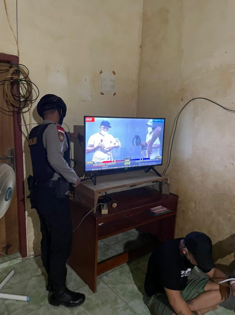 Dari informasi tersebut Unit PATRA BATAS dibantu Unit Paminal Sipropam langsung melakukan pengecekan ke TKP dan didapati sejumlah orang yang sedang melakukan Perjudian Jenis Sabung Ayam secara online yang ditayangkan melalui media Televisi