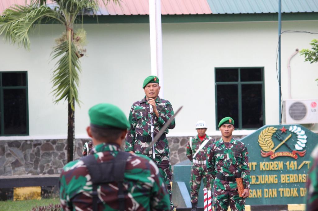 Watampone,Berandankrinews.com Personel Korem 141/Toddopuli, Balakrem Beserta Pns Korem melaksanakan Upacara Bendera Dengan Irup Kasiren Korem 141/Toddopuli Drs Nelson Bahtiar Situmeang, S.E bertempat di lapangan Apel Makorem 141/Toddopuli Jln. Jendral sudirman No. 09 Watampone. Senin (10-10-2022)