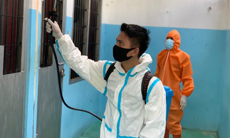 Edi Purwanto selaku Kasubsi Perawatan menyampaikan bahwa penyemprotan ini dilakukan secara mandiri oleh Tim Kesehatan.