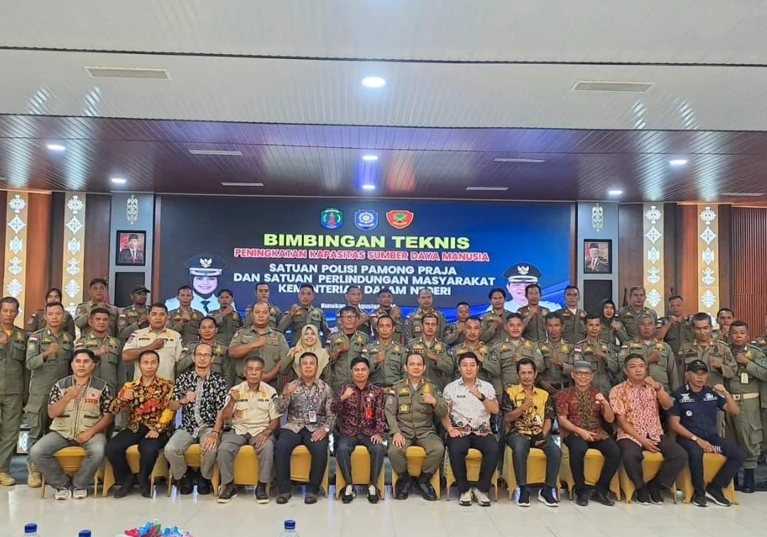 Peserta bimbingan teknis peningkatan kapasitas SDM ini berjumlah 80 peserta yang terdiri dari anggota Satpol PP yang merupakan Fungsional Polisi Pamong Praja sebanyak 40 orang dengan materi bahasan mekanisme kenaikan pangkat dan jenjangan jabatan fungsional Pol PP dan strategi pembinaan, ketentraman dan ketertiban umum dan implementasi SOP pelaksanaan penegakkan Perda dan Peyelenggaraan Trantibum; dan anggota Satuan Perlindungan Masyarakat berjumlah 40 orang peserta dengan materi bahasan memahami tugas pokok dan fungi Satlinmas, dan Peran Satlinmas dalam penyelenggaraan Pemilihan Kepala Daerah Tahun 2024.