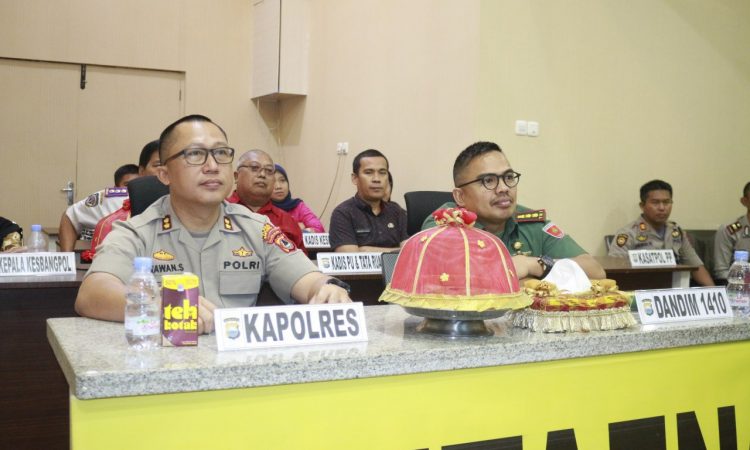 BANTAENG – Kapolres Bantaeng AKBP. Wawan Sumantri,ST,SH,MH. beserta Komandan Kodim 1410 Bantaeng Letkol. (CZI) Tambohule Wulaa hadiri Video Confrence (Vicon) Rapat Koordinasi (Rakor) Bidang Operasional dalam rangka persiapan Operasi Lilin Tahun 2019,