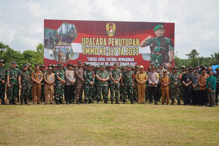 “Kepala Staf Kodam (Kasdam) VI/ Mulawarman Brigjen TNI Susilo yang menjadi Inspektur Upacara membacakan amanat Panglima Kodam VI/Mulawarman pada acara penutupan TMMD Ke -117 bahwa Program TNI Manunggal Membangun Desa TMMD ke – 117 tahun 2023 yang dilaksanakan selama 30 hari ini merupakan operasi bakti TNI dalam rangka meningkatkan kesejahteraan rakyat yang dilaksanakan secara lintas sektoral dengan melibatkan TNI, polri, kementerian, lembaga pemerintah, non kementerian, lembaga daerah, mahasiswa, dan segenap lapisan masyarakat.