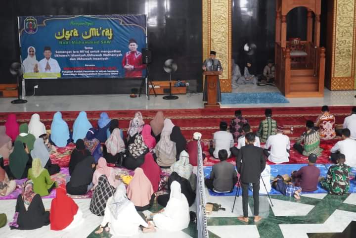 “Saya mengajak kita semua untuk bersama-sama agar mengikuti tausiyah dari pengisi yaitu KM.H. Usman Pateha,S.Hi,M.Pd dengan seksama agar mendapatkan ilmu yang bermanfaat setelah kegiatan Isra’ Mi’raj ini nantinya” tambahnya.