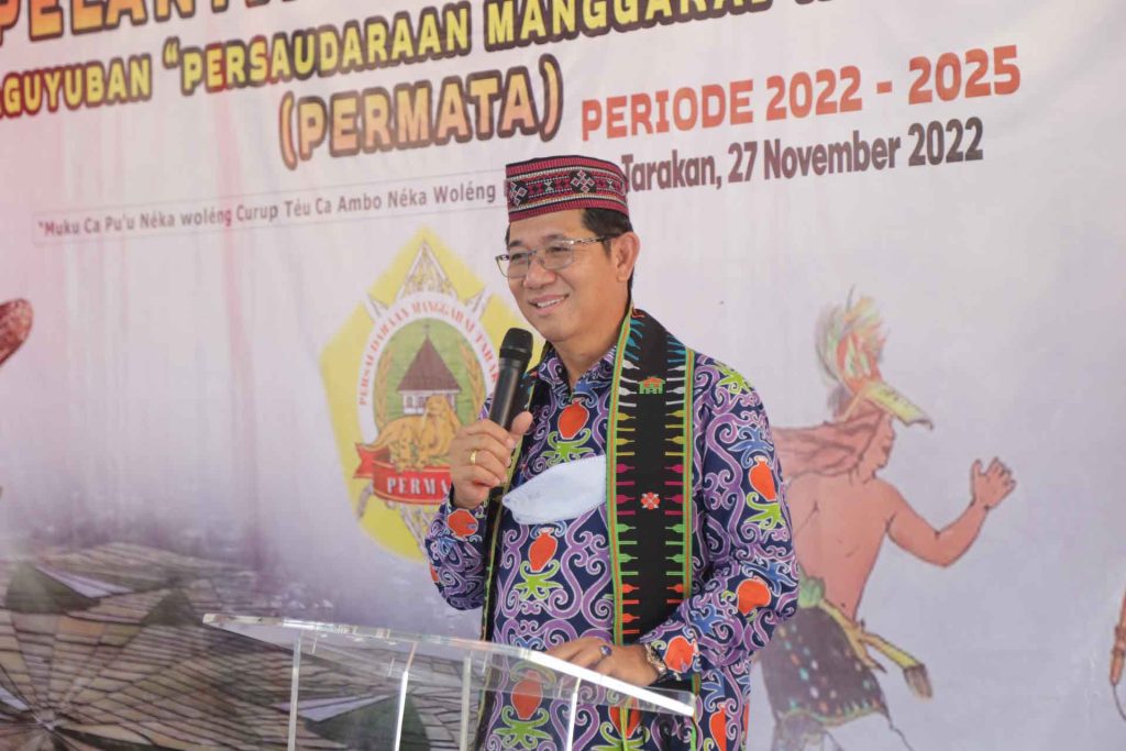 TARAKAN – Wakil Gubernur (Wagub) Kalimantan Utara (Kaltara), Dr Yansen TP., MSi menghadiri acara Pelantikan Pengurus Paguyuban ‘Persaudaraan Manggarai Tarakan’ (Permata) Periode 2022-2025 di Rumah Singgah Permata, Jalan Swadaya Kelurahan Juawata Krikil, Kota Tarakan, Minggu (27/11).