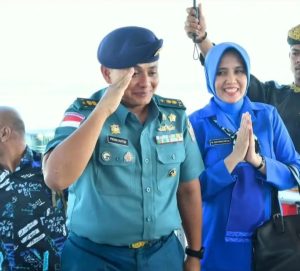NUNUKAN– Wakil Bupati Nunukan, Hermanus menyambut kedatangan Komandan Pangkalan Angkatan Laut (Danlanal) yang yang baru, Letkol Laut (P) Primayantha Maulana Malik, ST., M.Tr.Opsla bersama istri.