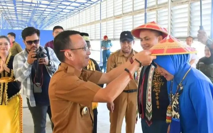 Dengan menggunakan SB. Sadewa Gemilang rombongan tiba di dermaga PLBL Leim Hie Djung Nunukan sekitar pukul 9.50 Wita disambut dengan Tari Tepung Tawar yang merupakan salah satu tradisi yang ada di Kabupaten Nunukan sebagai bentuk penghargaan atau penghormatan kepada tamu yang baru menginjakkan kaki di Tanah Kabupaten.