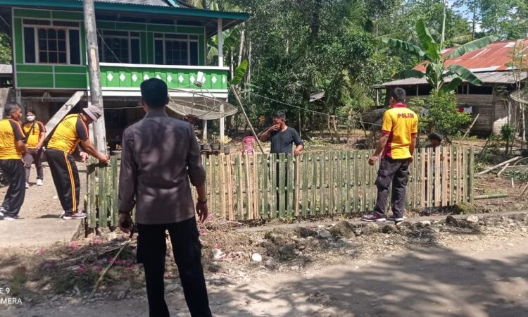 Kapolsek Dua Boccoe Polres Bone Iptu Andi Muh. Siregar, SH bersama personilnya melaksanakan kerja bakti membersihkan sepanjang jalan dan membuat pagar.