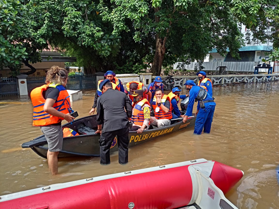 Sementara itu, polisi juga melakukan evakuasi dan bantuan ke wilayah Kabupaten Bekasi yang terdampak tanggul Sungai Citarum yang jebol. Diantaranya, Kampung Babakan Banten, Desa Sumber Urip, Pebayuran, Kabupaten Bekasi.