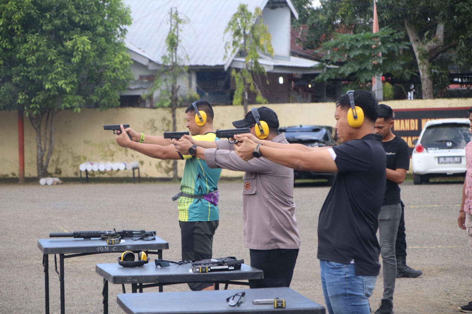 Terlihat, Danyon, Kapolres dan Dandim begitu serius membidik sasaran.