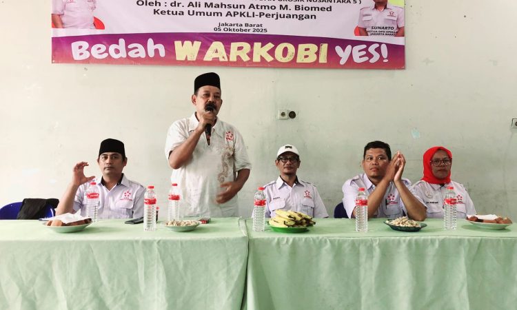 Dalam upaya wujudkan 20 Ribu Warkobi (Warung Kelontong Betawi) diperlukan operasi teritorial 200 warung kelontong per kelurahan di 44 kecamatan se-DKi Jakarta. Hal ini untuk pastikan 50% atau 100 WARKOBI di 267 kelurahan terwujud atau 26.700 WARKOBI se-DKI Jakarta. Karena Operasi teritorial itu dikatakan sukses jika bisa pastikan 50% tergalang dengan baik. Hal tersebut disampaikan Ketua Umum APKLI Perjuangan dr Ali Mahsun ATMO M Biomed dihadapan jajaran pengurus DPP, DPW Provinsi dan DPD Se-DKI Jakarta, serta DPC 8 Kecamatan se-Jakarta Barat di Jelambar Minggu 5 Oktober 2025.