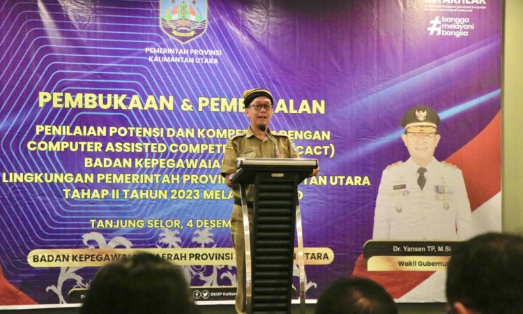 TANJUNG SELOR – Staf Ahli bidang Aparatur, Pelayanan Publik, dan Kemasyarakatan, Syahrullah Mursalin mengungkapkan, Pemerintah Provinsi (Pemprov) Kalimantan Utara terus berupaya mewujudkan Sumber Daya Manusia (SDM) Aparatur Sipil Negara (ASN) yang unggul. Hal ini disampaikannya pada Pembukaan Pembekalan Penilaian Potensi dan Kompetensi di lingkungan Pemprov Kaltara tahap kedua tahun 2023, Senin (4/12).