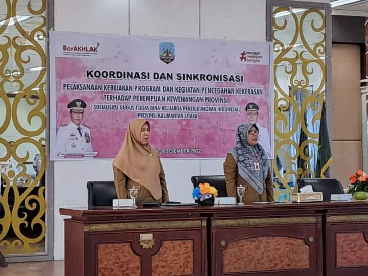 NUNUKAN – Mewakili Bupati Nunukan Kepala Dinas Sosial, Perlindungan Perempuan dan Anak, Faridah Ariyani membuka secara resmi kegiatan sosialisasi gugus tugas Bina Keluarga Pekerja Migran Indonesia (BK-PMI) yang merupakan bagian dari kegiatan koordinasi dan sinkronisasi pelaksanaan kebijakan, program dan kegiatan pencegahan kekerasan terhadap perempuan kewenangan Provinsi Kalimantan Utara.